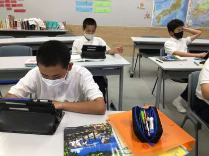 iPadで発音をそれぞれ確認しています!