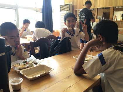 お弁当をいただきます! 公開日 2021/07/13 更新日 2021/07/13 活動の記録 1年生は旭の良いところを再発見するためにいろいろな場所を訪れました。お昼ご飯は、万根町にあるてくてく農園さんのお弁当をつくラッセルのカフェでいただきました!