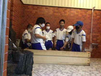 榊野温泉の旅館では、足湯に入らせていただきたり話を聞かせていただいたりしました!