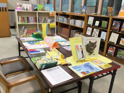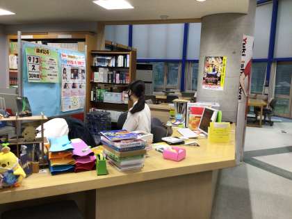 お昼休みの図書館です。図書委員会が活動をしています。
