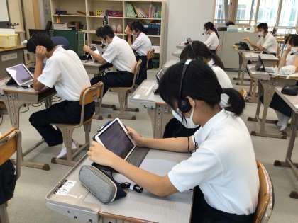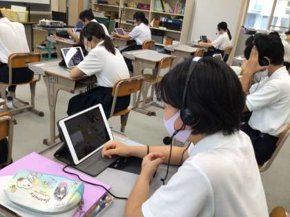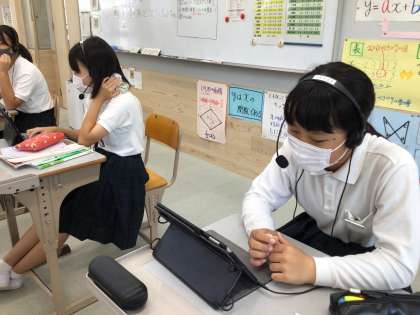 ペア学習をオンラインを使って行いました!音読練習も距離を保ちながらオンラインで行いました!