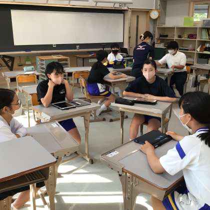 新しい給食メニューについて、話し合いを行いました。聞く姿勢や話し合いをつなげていくことを意識して話し合っています。