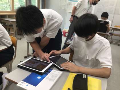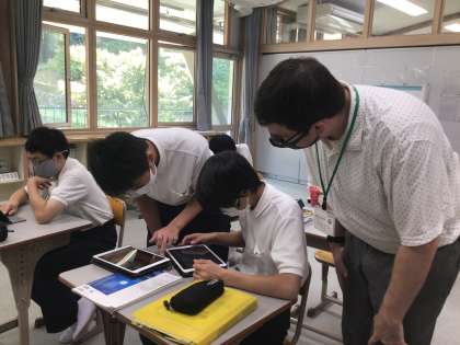 ALTの先生が海外のインスタグラムやポスターについてプレゼンしています。どんな工夫があるのかを読みとっています!