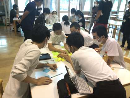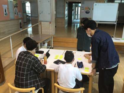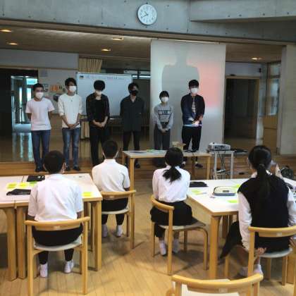 あさぷろさん×1年社会 公開日 2021/09/28 更新日 2021/09/28 各学年から 旭地区を活性化するために活動をしている大学生団体「あさぷろ」さんにお越しいただきました。1年生の社会の授業で一緒に話合い活動を行いました。
