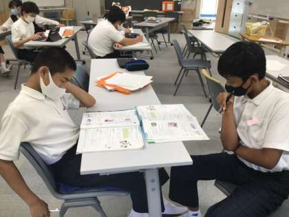 教科書本文をペアで学習しています!フィリピンについて学んでいます!ハロハロというデザートが美味しそうです。