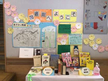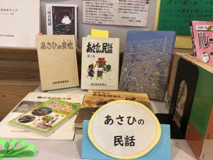 今月の図書館は「旭の歴史」特集です。昔話や郷土史を展示しています!