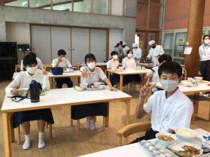 給食前の様子です。今日の給食も黙食ですが、楽しくいただきました!