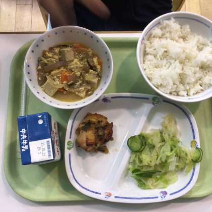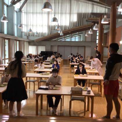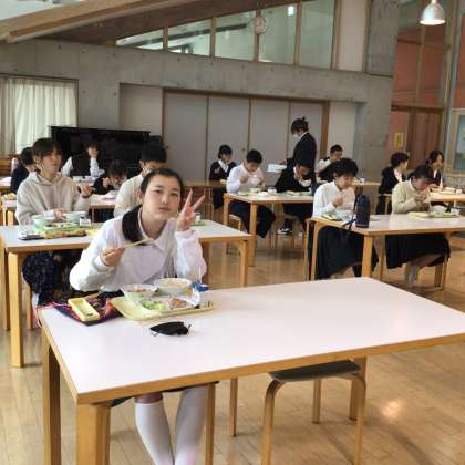今日の給食も美味しくいただきました!みんな、前を向いて食べています。