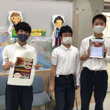 英語で旭バーガージビエのチラシをつくりました!