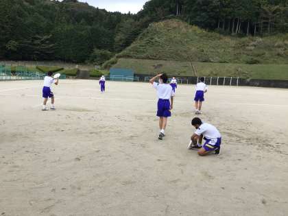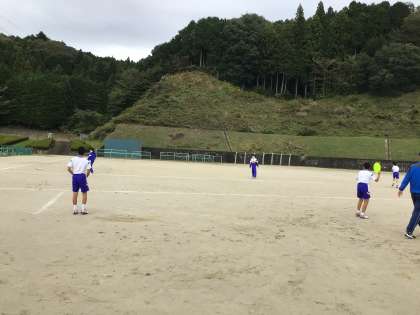 アルティメットの練習を行なっています。準備運動もしっかり行なっています!