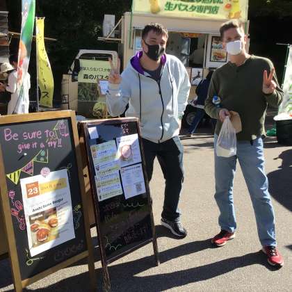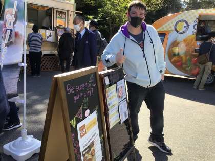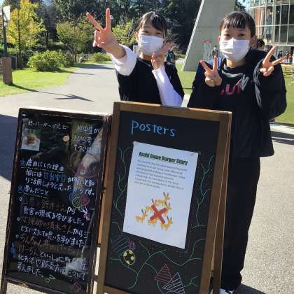 英語の授業で取り組んだ英語版の看板もお店の前に置きました!フィリピンの方からのアドバイスをいかした看板になりました!
