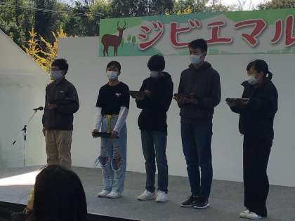 ジビエマルシェのステージで総合で取り組んできた活動を発表しました。
