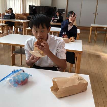 文化祭のお昼にジビエバーガーの販売を行いました。ジビエバーガーをはじめて食べた生徒もいました。