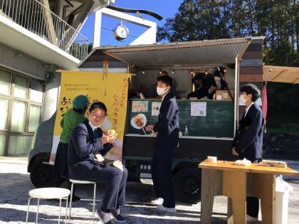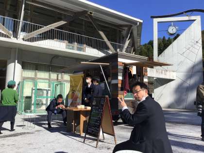 ジビエバーガーの販売をちんちゃん亭さんと3年生が行いました!いい天気です!