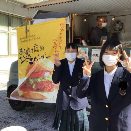 青空のもとジビエバーガーを販売しました。