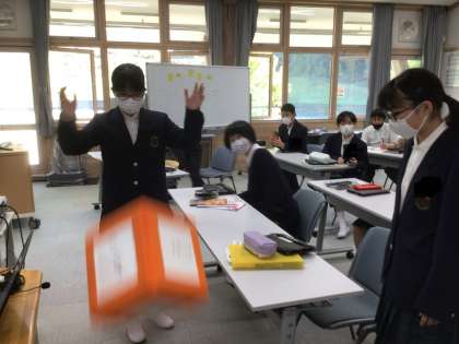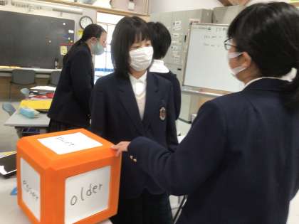 大きなサイコロを使って英語で会話をしました!
