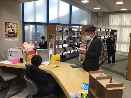 昼休みの図書館の様子です。読書をしたり、本を借りたりして過ごす姿がみられます。