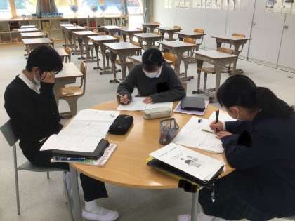 後期中間テストに向けて英語の勉強をしています!グループで教え合いながら勉強を進めています!