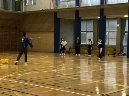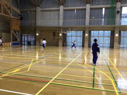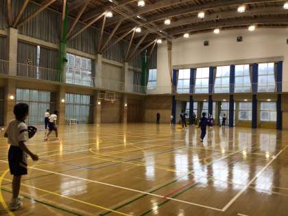 今日は雨のため体育館でソフトボールをしています!