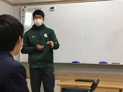 1年生の帰りの会では、自由と責任について担任の先生が話しました。