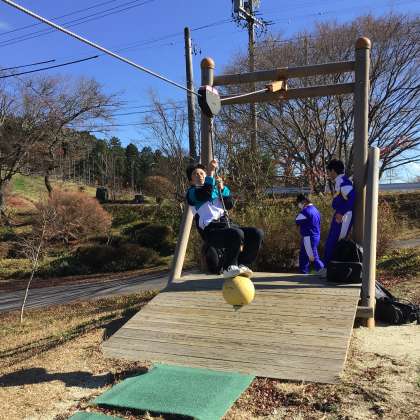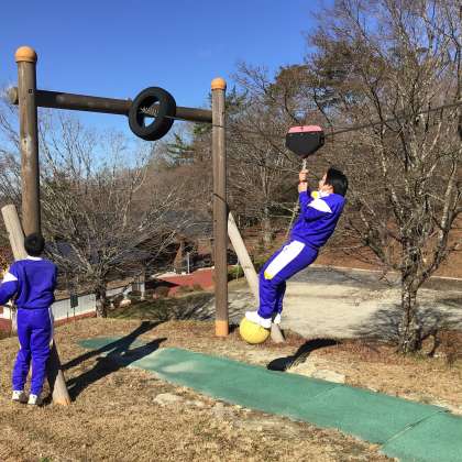 1年生は昼食後、旭高原元気村で体を動かしました。