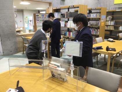 図書委員が委員会活動をしています!ホームベースの本を選んだり、アンケートを作ったりしています。