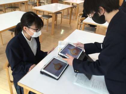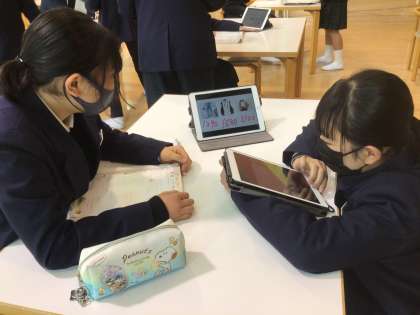 生徒がiPadで自分のお店を作りました!店員と客の役にわかれて英語で買い物をしています!