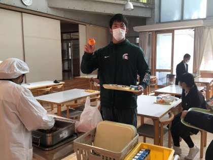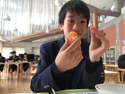季節を感じる献立でした!小さなみかんを発見しました!