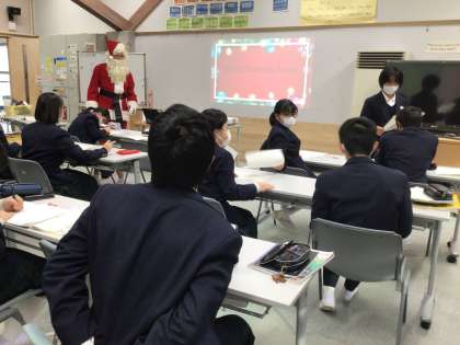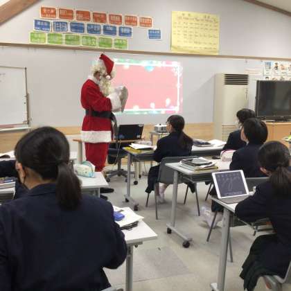 旭中にサンタクロースがやって来ました!クリスマスの食べ物について話しています!
