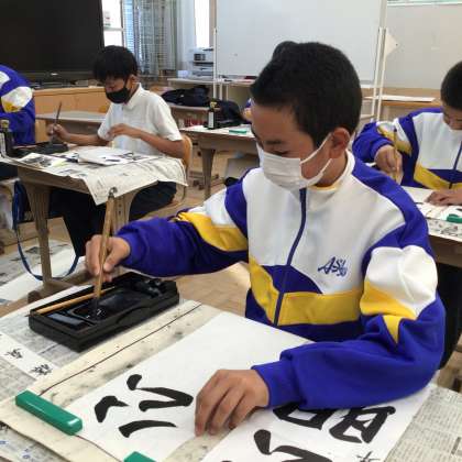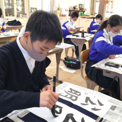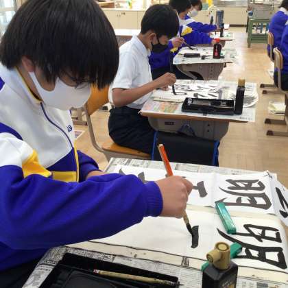 1年生の書き初めの様子です!冬休みにも練習した成果を発揮しています!