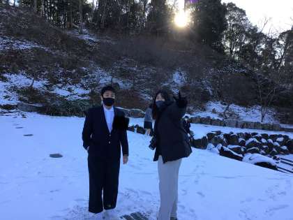 旭中学校はまだ雪が積もっています!