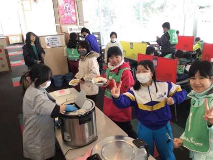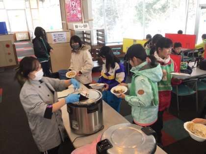 スキー研修食事の様子です!ハヤシライスです!