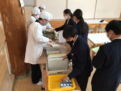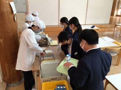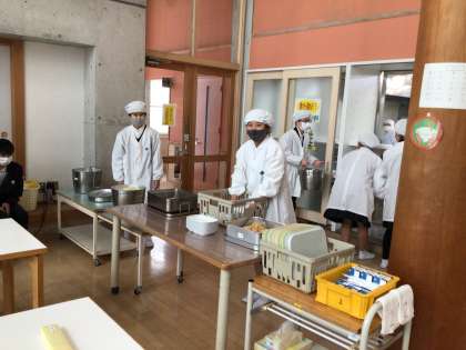 給食当番が準備しています!今日の給食はなんでしょうか。
