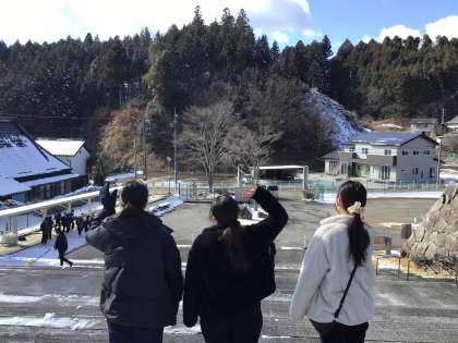 雪景色の中、下校をしました。自転車通学の生徒は徒歩で下校をしました。