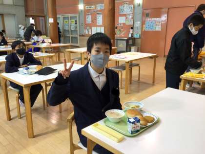 今日の給食も美味しくいただきました!ツイストパンでした!