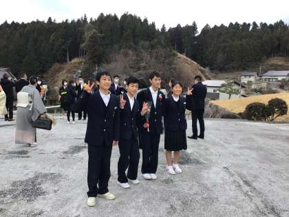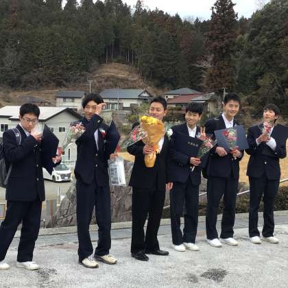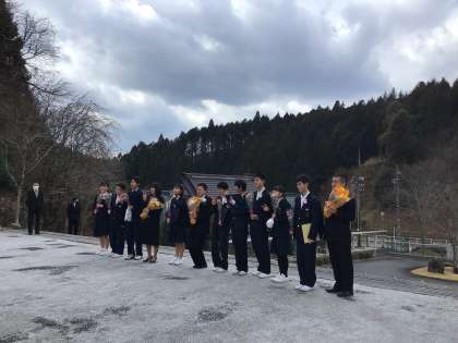 青空のもと、3年生が旭中学校を卒業しました。