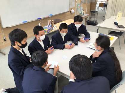 1年生は学活の時間に、感染症対策をしてトランプやボードゲームを行いました。