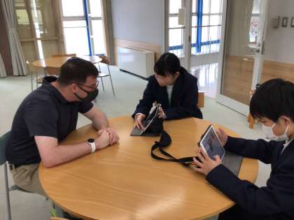 ALTの先生と、英語で質問し合う練習をしました。