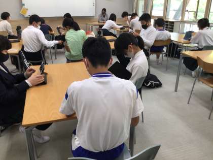 3年生帰りの会の様子です!iPadで連絡を確認しています!