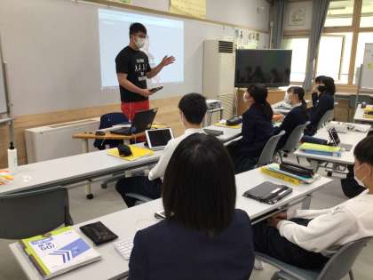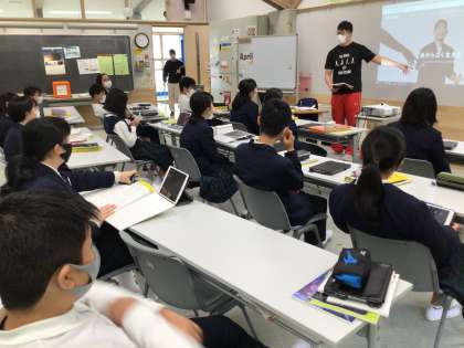3年生はパラスポーツについて英語で学習中です!体育の先生がパラスポーツについて話をしました。英語と体育のハイブリッド授業です!