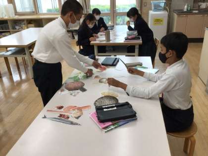 いろいろな食材カードを6つの基礎食品群にわける学習をしました。