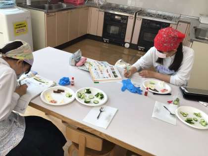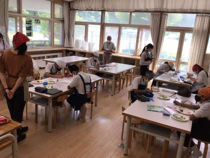 家庭科の授業で食品実験を行いました。 食材に含まれるでんぷんを調べました。