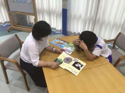 司書さんによる読み聞かせです!蜘蛛の絵本を読んでいます!