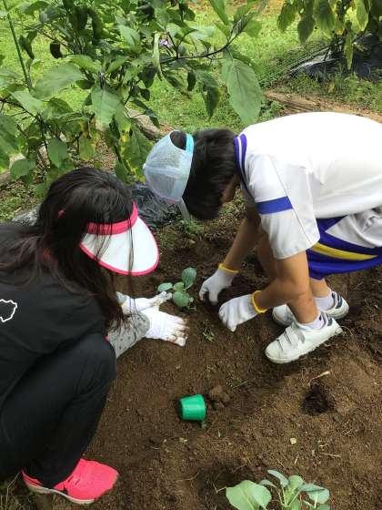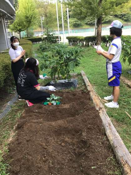 3組では花壇を耕し、冬野菜を植えました!