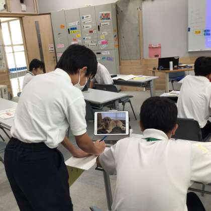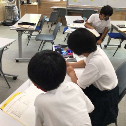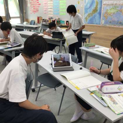 1年生は部屋をiPadで撮影して、英語で発表しました!前置詞の練習です!