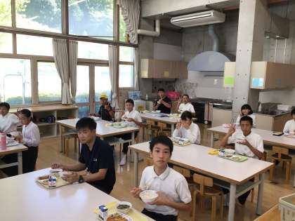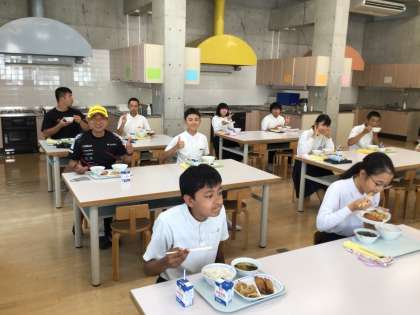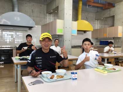 選手の方やスタッフの皆さんと給食も食べました。