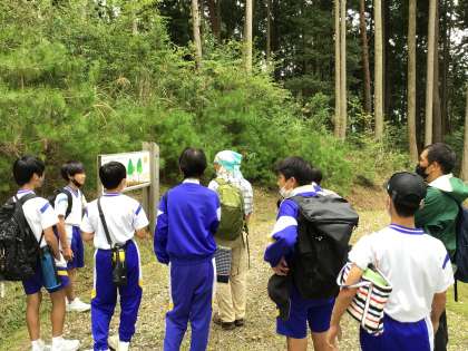 旭地区にある水源の森では、植物の特徴などをたくさん教えていただきました。