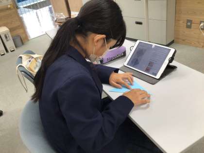 来週、カンボジアの中学生とオンライン交流をします。一緒に折り紙を折る予定です!説明の準備中です。