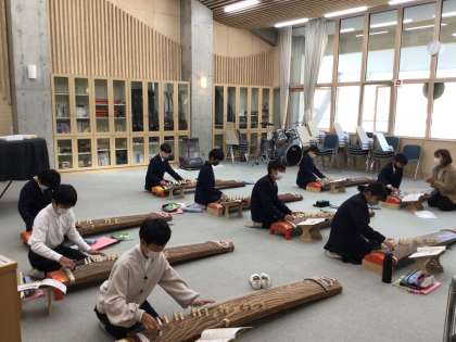 琴を練習しています。 みんな、姿勢にも気をつけて頑張っています。