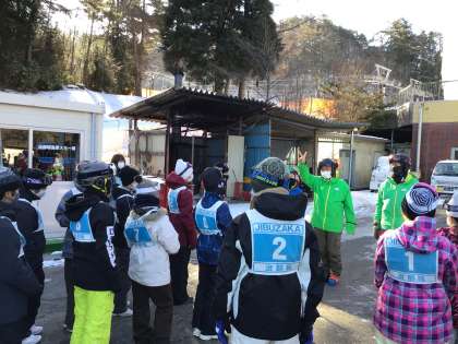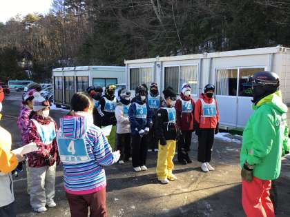スキー場に到着し、開校式を行いました。